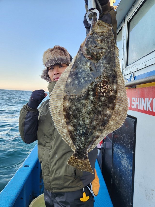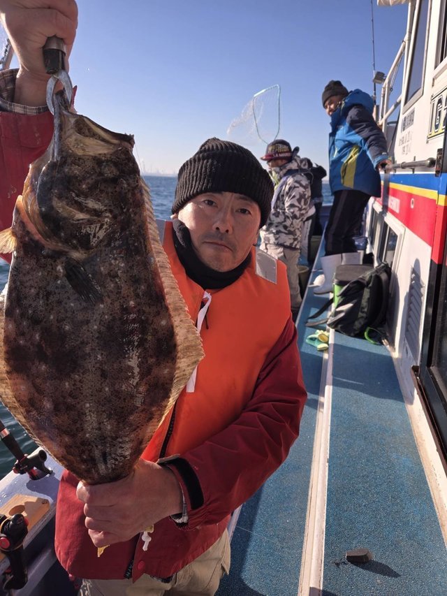 (スズキ)50~60cm 0~2匹 ヒラメ 1.00~4.50kg 0~5匹 ヒラメで出船朝からイワシベイトの中釣りましたがシーバスのみで他のポイント探しながらの釣行になりましたがどうにか4.5k・3.5k・3kと2k代が多く釣れましたソゲは船中3枚でしたバラしも有りましたがどうにかお土産にはなりました他スズキなども釣れました。寒い中朝早くからお疲れ様でした。 2月1日日曜ヒラメ船空席有ります。