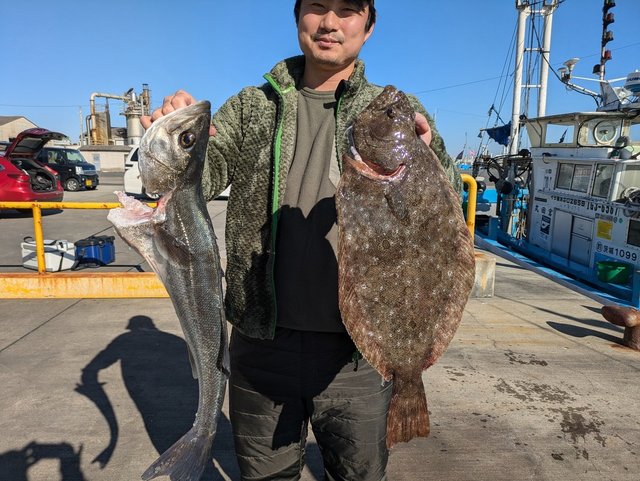 (スズキ)ワラサ ヒラメ 新年明けましておめでとうございます。 今年も宜しくお願い致します。 ヒラメ船。 イワシの群れに当たり常連さんが良型を 釣り上げてくれました!! スズキも多数掛かりマゴチも混じり 常連さん規定数達成!! 年明けは好釣果でのスタートが出来ました。
