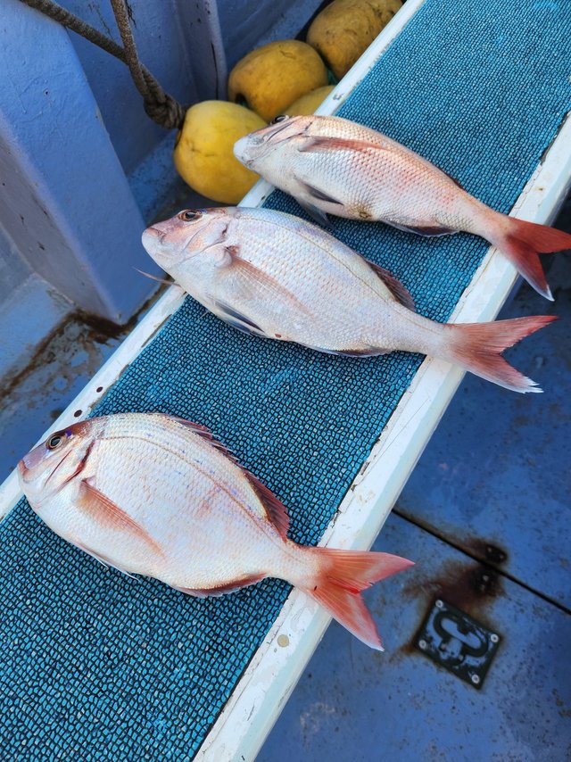 (チダイ)22~30cm 3~21匹 マダイ 25~33cm 0~15匹 今日はお客様の要望で活エビ使用テンヤマダイ五目船で出船しました。マダイ15匹は、横須賀さん、マダイと外道混じり右島さん37匹、外道カサゴ、メバル、ハタ、イナダ、ウマズラ、フグ、ムシガレイ混じりました。明日、21日マダコ船で出船します空席多数あります、予約受付手います。集合4時ですので時間に余裕を持つてお越し下さい。
