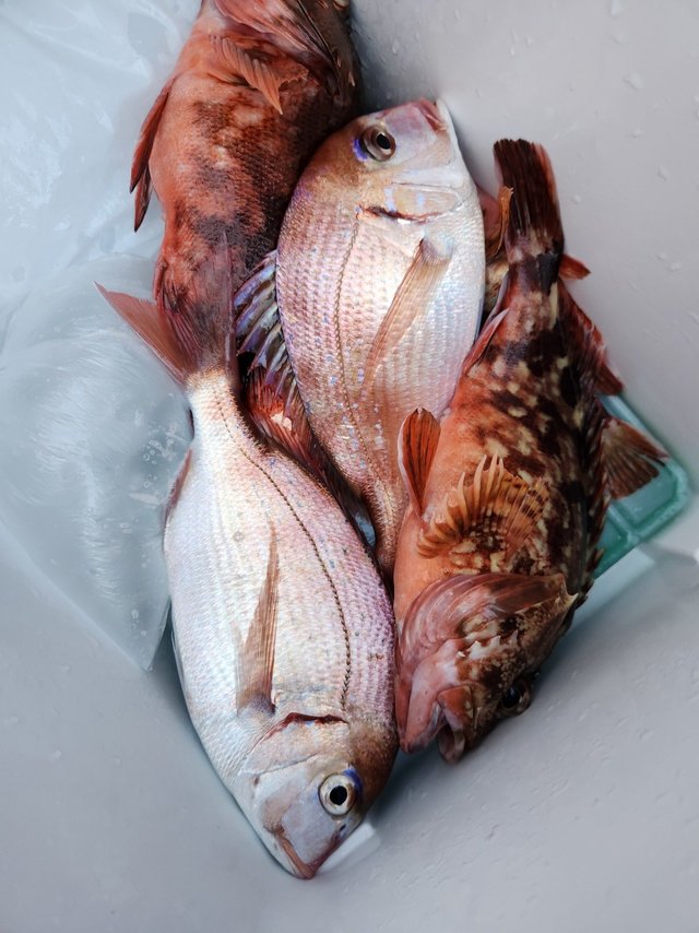 (チダイ)0.40~0.90kg 0~2匹 マダイ 1.10~2.50kg 0~3匹 ショウサイフグ 20~25cm 0~1匹 カサゴ 15~20cm 0~3匹 ムシガレイ 30~33cm 0~1匹 午前テンヤ真鯛船 北の、大鯛ポイントを狙い 前半は、当たり少なく 全然ダメで、 漁礁で、土産釣ってから また、大鯛ポイントを狙うと 出ました、真鯛! 0、6キロ 0、8キロ 1、1キロ 1、5キロ 2、0キロ 2、1キロ 2、16キロ 2、5キロ。 ゲットされた方は おめでとうございま~す(^o^)/