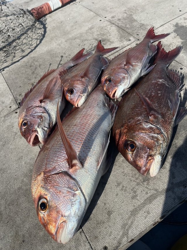 午後テンヤ大鯛中鯛連発。2.6キロ2.3キロ1.8キロ混じりで800サイズまでがポツポツヒットして楽しめましたよ~。