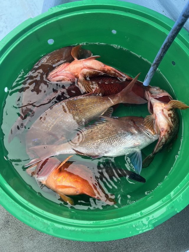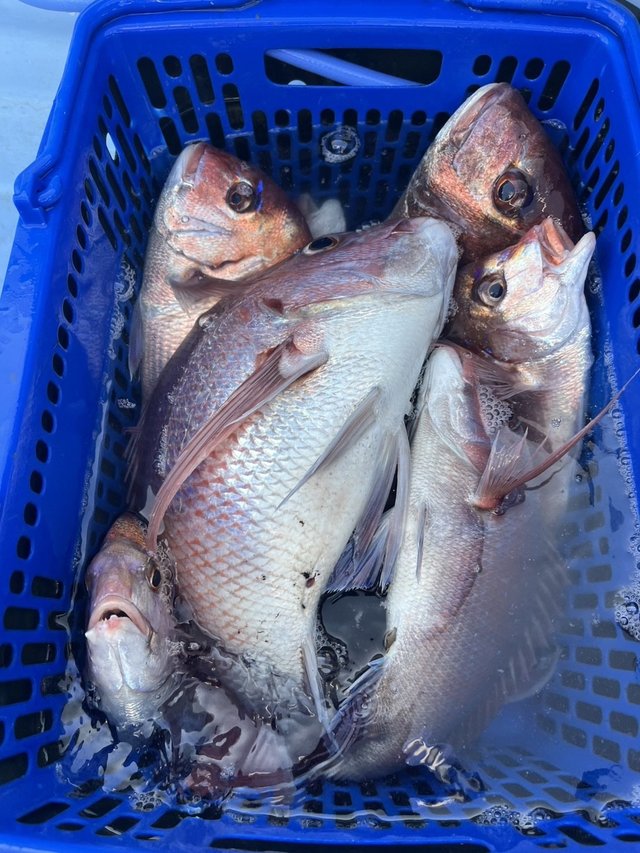 (チダイ)マダイ 大会の時とは違って枚数釣れました。 大物は、でませんでしたが お土産にマハタ、ウマヅラが多く釣れました。 またよろしくお願いします!