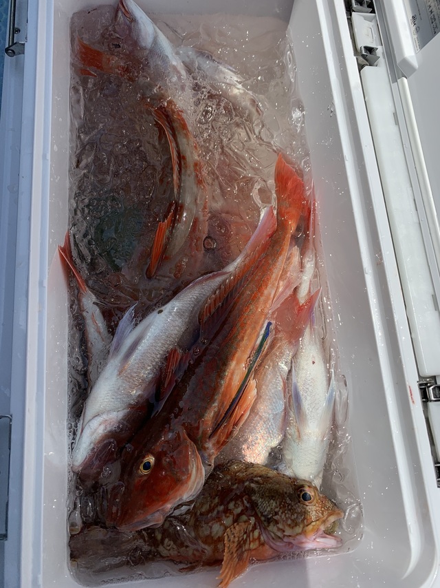 (チダイ)25~35cm 1~9匹 マダイ 0.80~5.50kg 0~9匹 内訳)5.5kg・4.5kg・4.1kg・2.2kg・2.2kg・2.1kg・2.1kg・1.9kg・1.9kg・1.8kg・1.8kg・1.4kg・1.3kg・1.2kg・1.2kg・1.1kg・1.1kg 今日は朝から潮流れよくポツポツと良型主体に掛かりました♪5.5kg筆頭に内訳通り好調でした! ハナダイ、ホウボウなどのお土産になり楽しめました! 幸栄丸大鯛チャレンジ!7kg以上枠もありますのでぜひチャレンジしにきて下さい!!