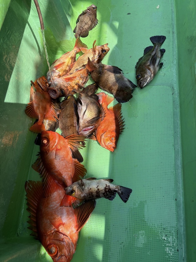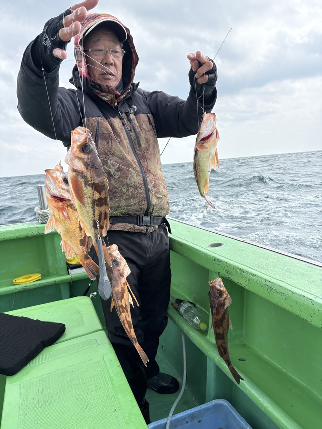 風向:南東。 潮:小潮。 波高:2.5 根魚五目船。 水深40m辺りを攻めてきました。 ヒラメ・良型のハタ・メバル・カサゴ ホウボウ・キントキと魚種が多彩!! 潮の流れが速くバラシも多くなってしまいました。 今後も根魚五目船期待出来そうですね!!