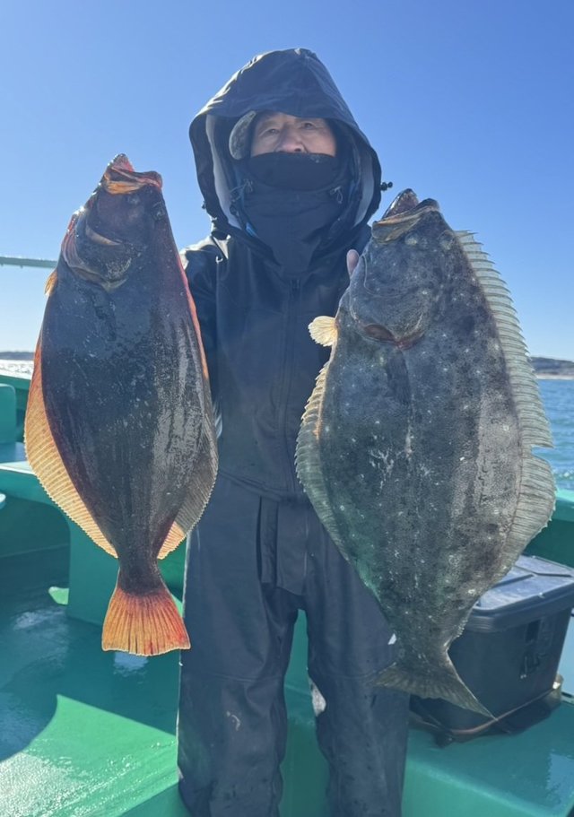 80~150匹 1/3、タチウオ釣りとヒラメ釣りで出船。 一日通して入れ食い、爆釣でクーラーに入りきらないほど。 サイズは指3~4本サイズが普通に釣れてました。手返しが良いお客様は数多く釣りますね~。 ヒラメ釣りは1番6枚、2番5枚4名、3番4枚3名、最大2.8㎏。 本日は2㎏前後~2.5㎏前後の型が多く釣れ、全中平均的に皆様4~5枚ほどのお土産になりました。 1/2のヒラメ釣りは1番7枚、2番6枚、3番5枚3名、最大3.8㎏。 少々小ぶりな型が多かったが皆様4枚前後のお土産になりました。ご乗船いただきましてありがとうございました。