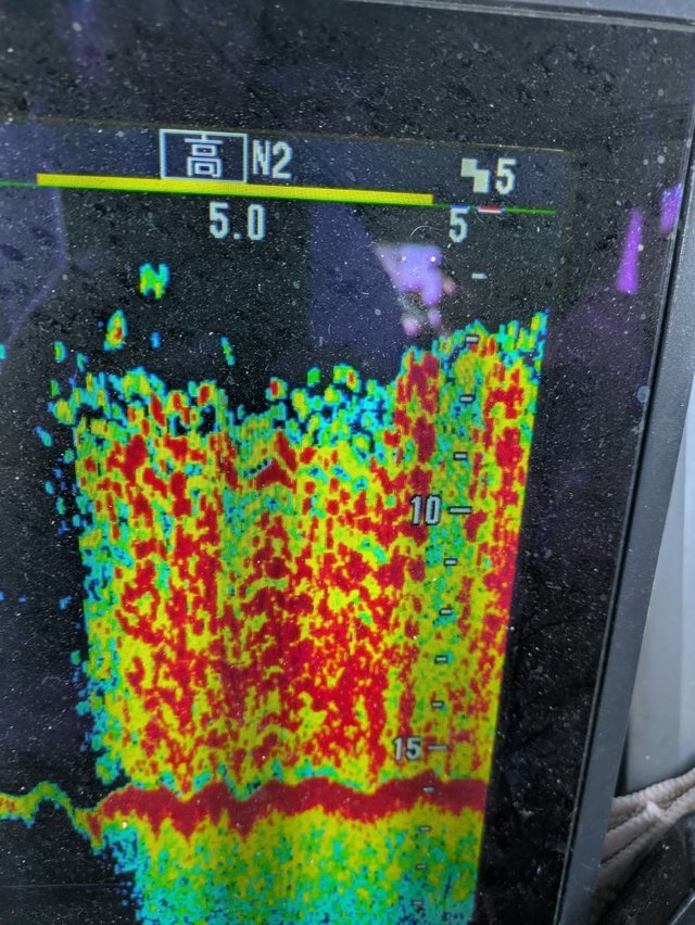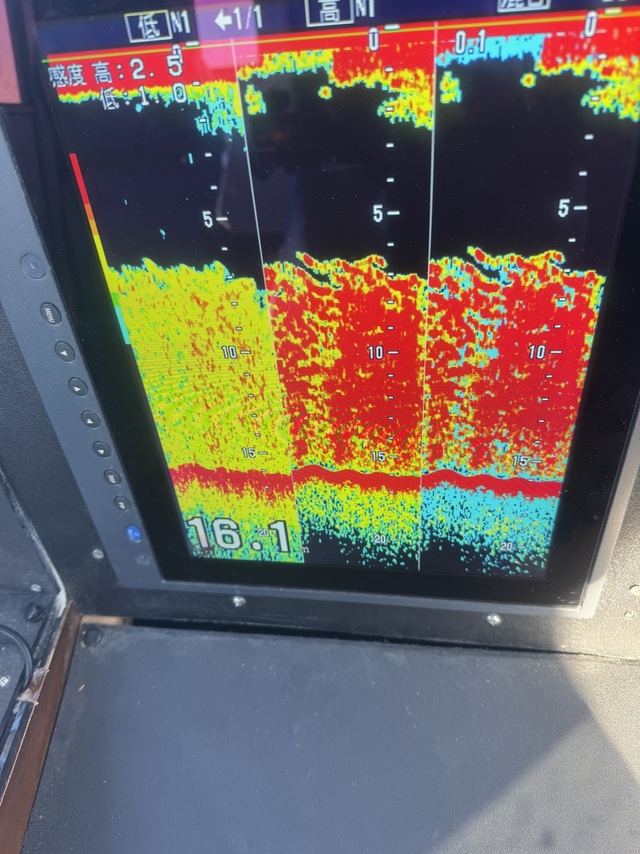 70~120cm 41~180匹 2隻の高低差 水深15m 文句なしの爆釣!! 反応も固まり入れ食い状態! 10時半早上がりとなりました!