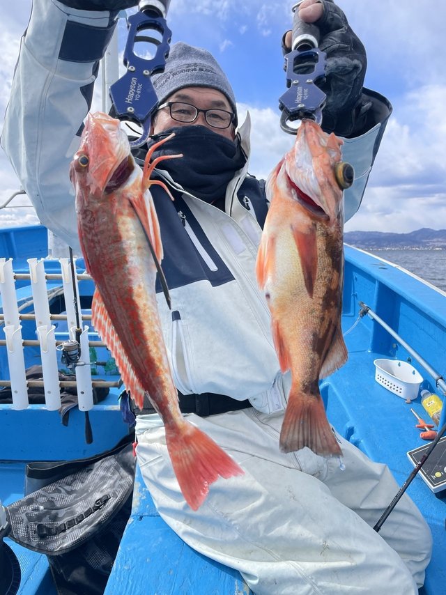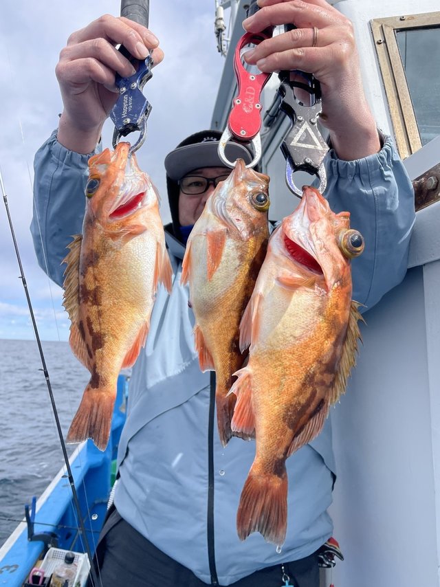 アカムツ 30~38cm 0~1匹 カサゴ アカムツ船です。海上ナギ良かったが、終日2枚潮で釣りづらかったです。サメの横取りも有り。 その他に、メダイ・沖カサゴまじる。