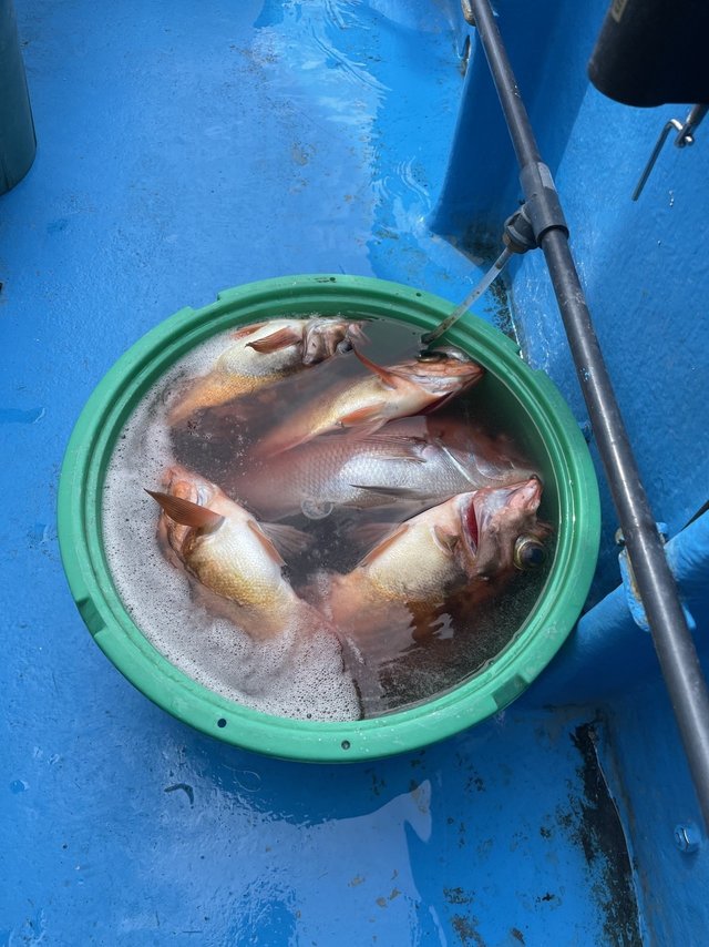 アラ 1.50kg オキカサゴ オキメバル クロムツ スロージギング船です。潮流れず、鯖多く邪魔で釣りづらかった。 その他に、沖メバル・沖カサゴ・クロムツ・メダイまじる。