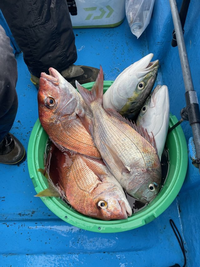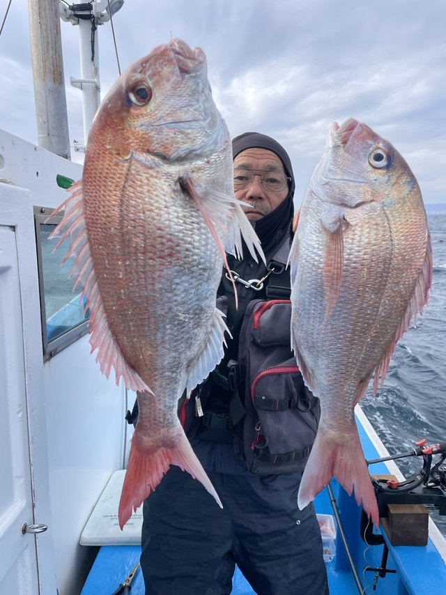 一つテンヤマダイで出船しました。水温16.3℃ マダイ最大で3.68kgその他2.58kg、1.92kg、1.4kg、1.4kg、1.3kg、1.2kg、1.2kg、1kg...トップ6尾でした。マダイ0.3~3.68kg0~6尾。ゲストでマハタ、カサゴ、メバル、アマダイ、オニカサゴ、サワラ3kg、ワラサ、ホウボウ、ハナダイ、サバ、ショウサイフグでした。本日、乗船の皆様ありがとうございました。 【お知らせ】 明日12月21日(日)はアマラバ、タイラバで出船致しまし。お早いご予約お待ちしております。 年末年始のお知らせ! 年末は31日まで年始は3日から出船いたします!お早いご予約お待ちしております。 11月1日からテンヤマダイ船集合5時に変更しました! ※誠に勝手ながら満船時の当日キャンセルは乗船料の100%頂きます。ご了承下さい! 一つテンヤマダイ 12,000円(エサ、氷付き) 集合4時30分になります。 アマダイ、アマラバ 12,000円(エサ、氷付き) 集合4時30分になります。 エギダコ 13,000円(氷付き) 集合4時になります。 ご予約 電話090-1842-0165 お気軽にお電話下さいね!!