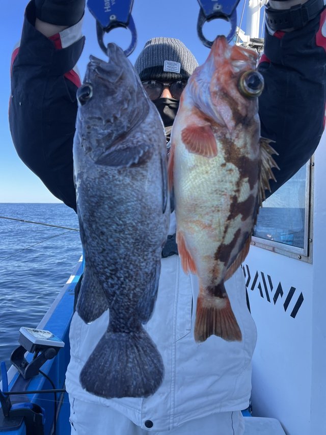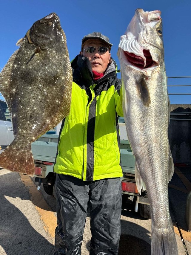 (マハタ)ヒラメ 0~5匹 カサゴ イナダ キントキ ガンゾー ヒラメ釣りで出船しました! 1人0〜5匹。 外道にカサゴ、イナダ、ハタ、キントキ、ガンゾウ。 朝からアタリが少なく 苦戦もラスト1時間で どうにか纏まりました!