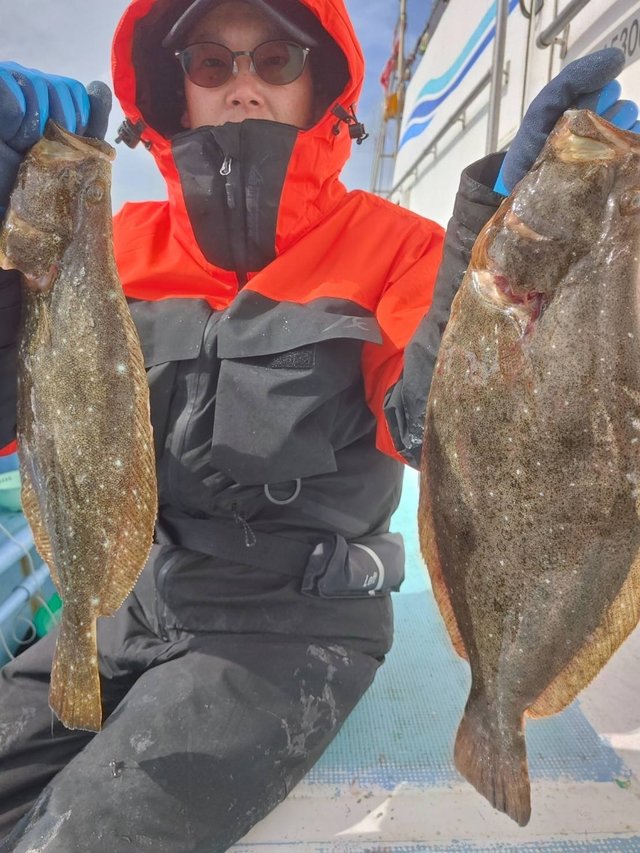 (マハタ)0~1匹 ヒラメ 2~6匹 マトウダイ 1~5匹 ソイ 0~1匹 カサゴ 0~2匹 イナダ 0~1匹 ヒラメ釣りで出船しました! 1人2〜6匹。 外道にマトウダイ1〜5匹。 ソイ0〜1匹。 ハタ0〜1匹。 カサゴ0〜2匹。 イナダ0〜1匹。 朝から凪の予報でしたが 北風が前日から残ってしまい 水温も2℃下がり 潮色も濁り 喰い悪く苦戦も 段々と良くなり 何とか纏まりました!