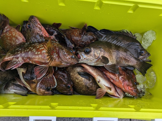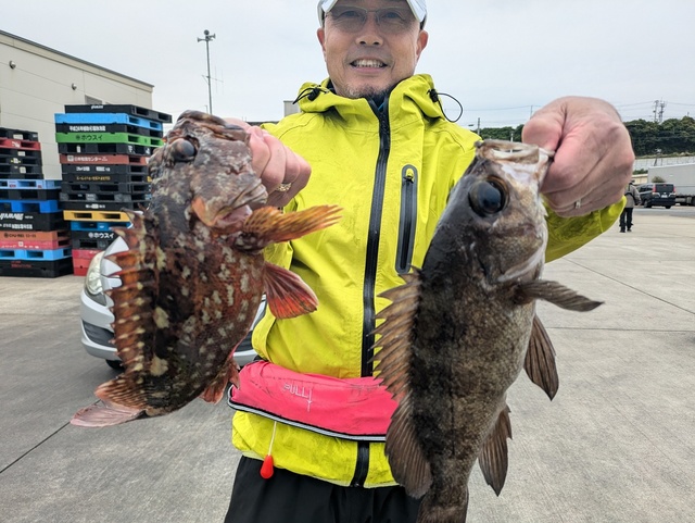 20~40cm 2~8匹 マダイ 0.30~1.00kg 0~3匹 メバル 25~30cm 1~16匹 ★ムラソイ船 ムラソイ、黒メバル好調!! ムラソイ40㎝級多数混じり良い人7〜8匹でした! 黒メバル30㎝級多数混じり良い人15〜16匹でした! 他に、カサゴ、ソイ、ショウサイフグなど多数混じり合計良い人20〜30匹くらい! ★テンヤマダイ船 真鯛1.0kg含み良い人3匹でした!! 他に、カサゴ、メバル、ソイ、ショウサイフグなど!