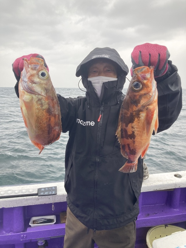 22~40cm 3~5匹 メバル 25~30cm 1~6匹 マハタ 25~30cm 0~1匹 本日は海上、南西の風強く、メバルのポイント、多く周れず苦戦しましたが、お客様、少人数で、皆さん、メバル型大きく、カサゴも釣れて、お土産になりました! 海、凪続けば、今年も大釣りの予感です、予約受け付け中 春はメバル釣りの時期です、予約受け付け中 エサ、サバの切り身あります、他、いろいろ用意しましょう