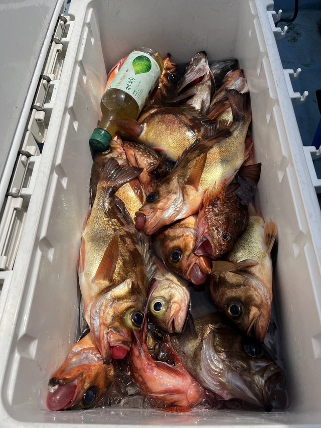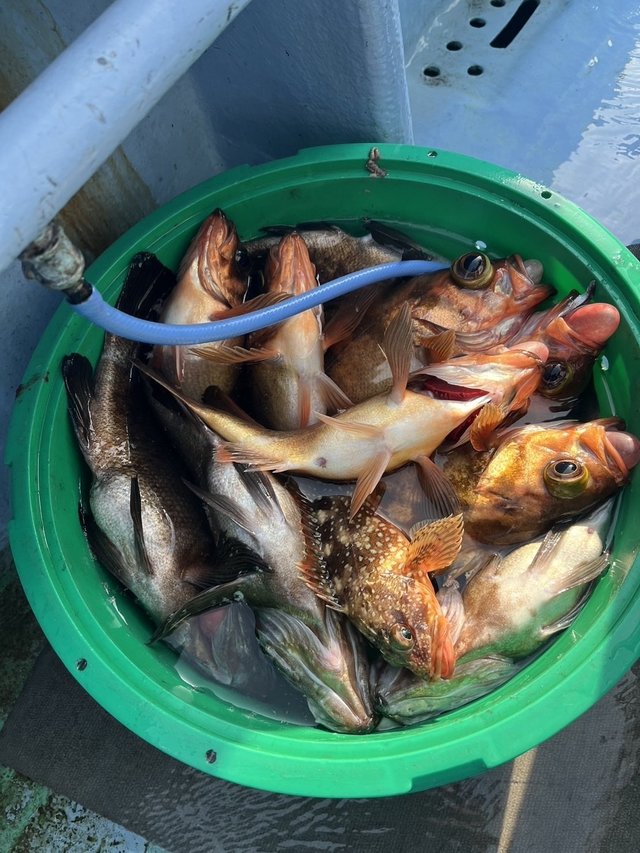 ◇◆◇メバル五目船◇◆◇ ・メバル…4ー22尾(25ー30センチ) ・その他…カサゴ、マハタ、ホウボウ、アジ、サバ、アラ 本日は朝の一時潮流れて多点掛け多く絶好調でしたがすぐに潮が止まってしまい、口を使わなくなってしまいました(泣) 沖も見に行きましたが同様の条件で活性低く凪倒れでしたね。 相変わらず反応は多いので条件揃えば食うと思います! ※浅場が食わなければ中深場も視野に入れてますので、中深場用の竿も持参しておくと急な深場も対応できます! 餌はサバ皮が付きますがイカ短も食いが良いので持参すると良いでしょう。 赤も黒も型が良いので美味いこと間違い無し! ※基本はフラッシャーサビキでの釣りになります。 ※電動リールは必須です。浅場が食わない時は沖も狙いに行きますし、型が良いので手巻きはしんどいですよ! ※浅場メバルの錘は60ー100号 ※深場の錘は120ー150号 ※竿は柔らか目がオススメです。 ※又は中深場用