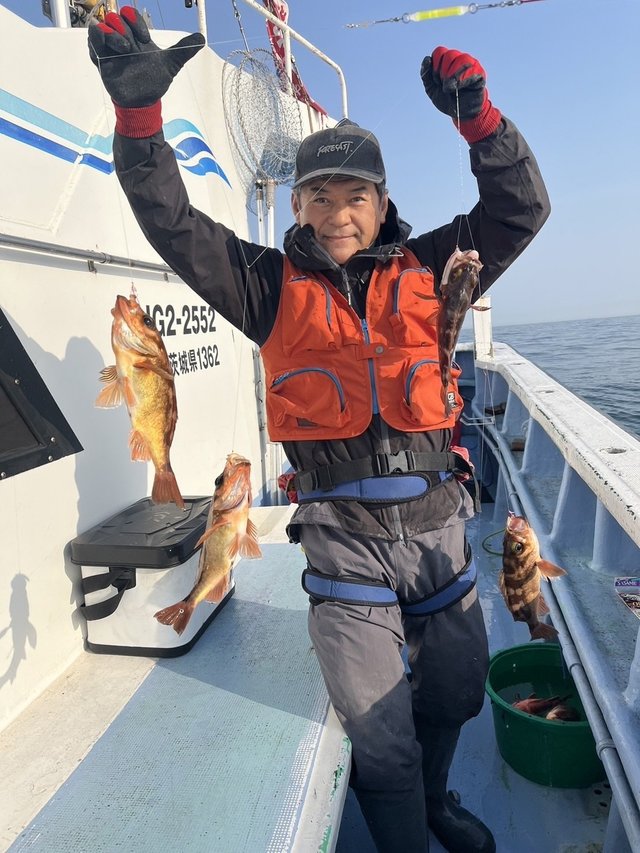 マダイ 最大3.70kg カサゴ ホウボウ ショウサイフグ 前半真鯛は口を使ってくれません、カサゴ、ホウボウ、ショウサイフグ、メバルが上がる。後半、タイラバで3,7kgの鯛が上がる。竿頭は、鹿嶋市の上甲様でした。