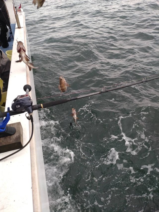 (メバル)ハタ ソイ カサゴ メバル船、朝から群れに辺り多点掛け!!産卵時期の今がチャンスです。
