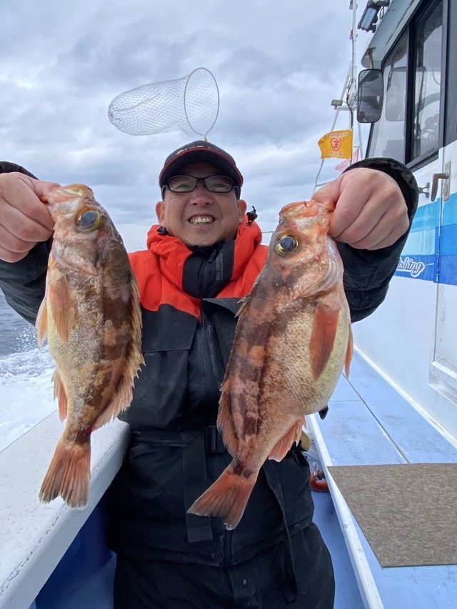 29cm 合計1匹 ◇◆◇メバル五目船◇◆◇ ・メバル…3ー43尾(22ー29センチ) ・その他…カサゴ、ホウボウ、ソイ、キントキ 本日は中盤まで拾い釣りでしたが後半に凪てくると食い気が出て多点掛け多数で数が伸びました! 反応も多いのでウネリが取れて凪て来れば期待できそうですね! 赤も黒も型が良いので美味いこと間違い無し! ※基本はフラッシャーサビキでの釣りになりますが、アラ狙いのポイントではアカムツ仕掛けがちょうどいいです。 ※電動リールは必須です。浅場が食わない時は沖も狙いに行きますし、型が良いので手巻きはしんどいですよ! *浅場メバルの錘は60ー100号、アラ狙いの錘は120ー150号を潮流により使い分けます。 *竿は柔らか目がオススメです。
