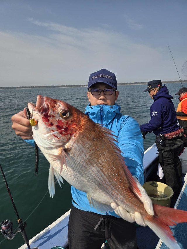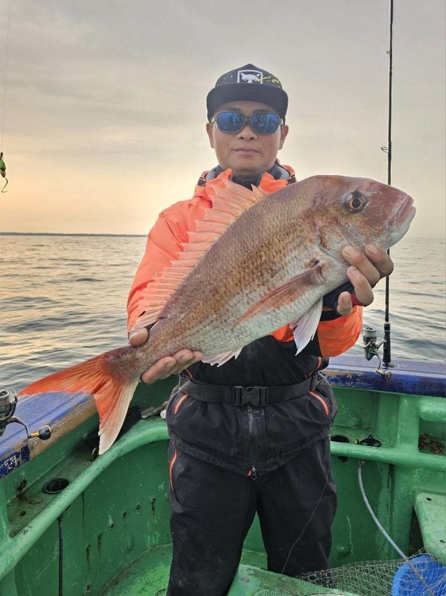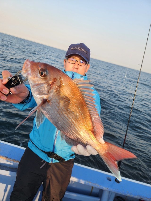 マダイ 0.50~2.50kg 0~5匹 ショウサイフク ハナダイ ホウボウ 午後テンヤ真鯛船。午後船にて、マダイは終始ポツリポツリと掛かり、中鯛ゲット出来ました。明日は予報悪く出船中止になりました。