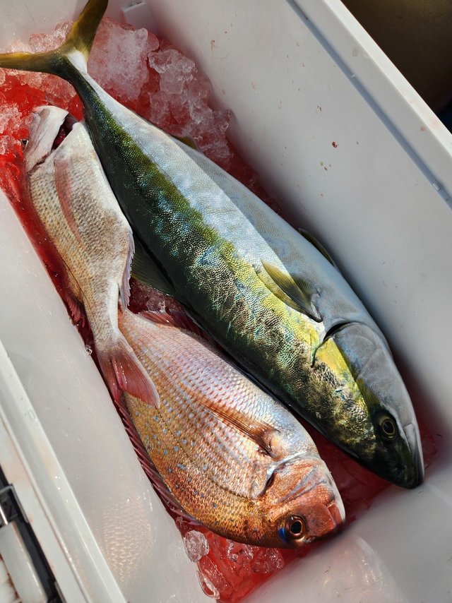 25~30cm 合計2匹 サバ 38~50cm 1~7匹 ホウボウ 30~50cm 1~6匹 イナダ 2.50kg 合計1匹 カサゴ 22~32cm 0~3匹 マダイ 1.00~2.00kg 0~1匹 午前ジギング船の釣果 朝からサバとホウボウは元気でした 青物は1キャッチのみで後半はマダイ狙いましたが喰いが落ちた後だったみたいで少し拾えただけでした キープ以外はリリースしました お疲れ様でした