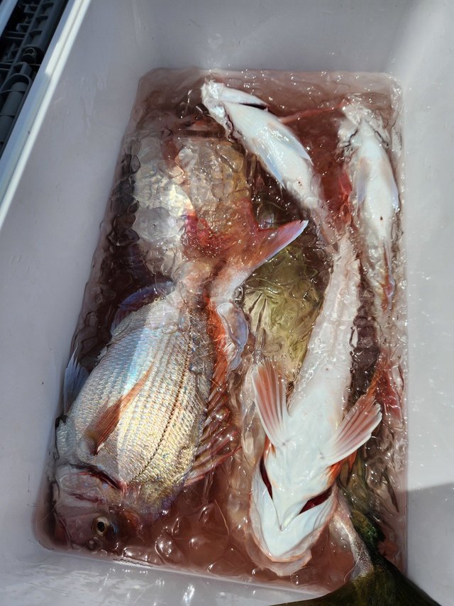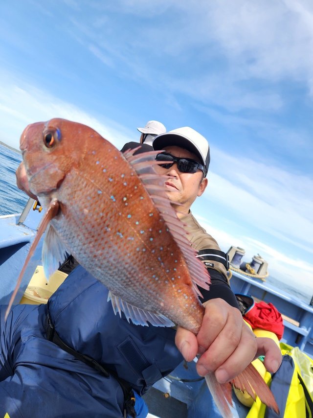 15~20cm 0~2匹 マダイ 0.70~1.50kg 0~3匹 ハナダイ 0.50~0.70kg 0~5匹 ホウボウ 30~45cm 0~3匹 ショウサイフグ 15~20cm 0~1匹 トラフグ 0.60kg 合計1匹 午後テンヤ真鯛船 午後からも 北のポイントを狙い、 小ぶりでしたが 真鯛、何枚かあがりましたよ~(^o^)/ 小学生の男の子も 真鯛、ハナダイ掛けてましたぁ!! 午後からも、潮流れ早く 釣りづらかったですね… お疲れさまでした!