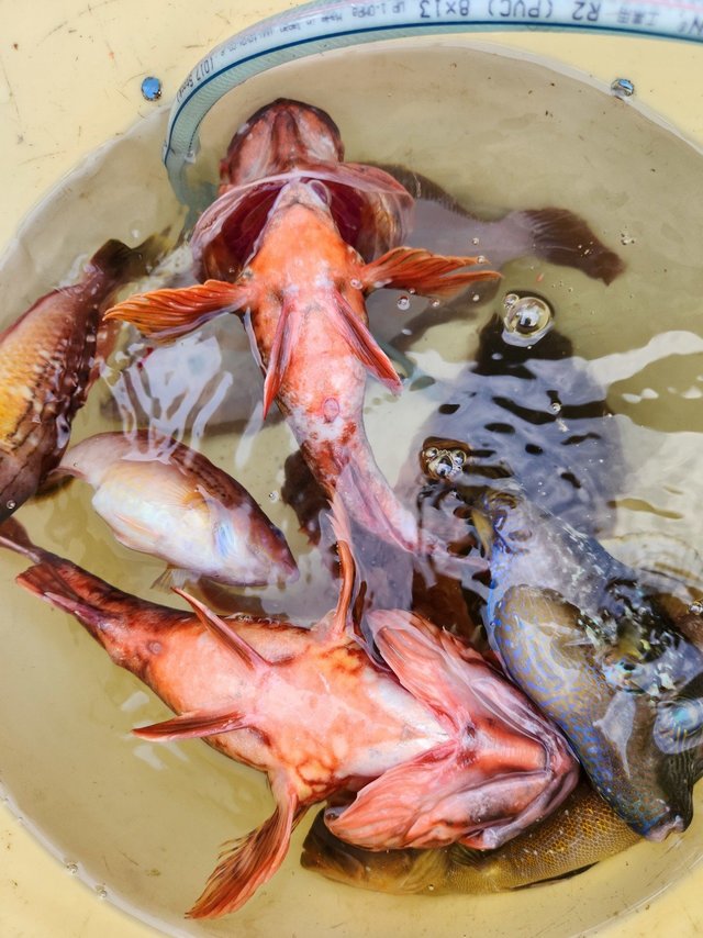 ユメカサゴ 最大38cm 15~33匹 オニカサゴ 最大1.67kg 0~2匹 ホウボウ アヤメカサゴ カンコ ヒメ オキメバル サバ 小さい夢カサゴは、皆様リリースして下さいました。保護ですね。