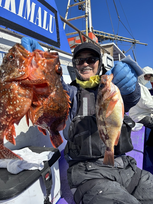 2~6匹 マトウダイ 1~5匹 ソイ 0~1匹 ハタ 0~1匹 カサゴ 0~2匹 イナダ 0~1匹 ヒラメ釣りで出船しました! 1人2〜6匹。 外道にマトウダイ1〜5匹。 ソイ0〜1匹。 ハタ0〜1匹。 カサゴ0〜2匹。 イナダ0〜1匹。 朝から凪の予報でしたが 北風が前日から残ってしまい 水温も2℃下がり 潮色も濁り 喰い悪く苦戦も 段々と良くなり 何とか纏まりました!