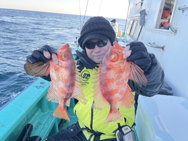 0.40~4.80kg 0~5匹 メヌケ 2.60~4.50kg 0~2匹 ヒラメ船 海上ナギ良く、潮流れずでアタリとおい時間帯もあったが良型多く食いました!残念ながら型見ず1名でした。お疲れ様でした。 その他に、沖メバル・カサゴ・マハタ・キジハタまじる。 メヌケ船 南のポイント潮の流れ速く、真沖(波崎沖)のポイント潮流れず単発だがあがれば良型でした。