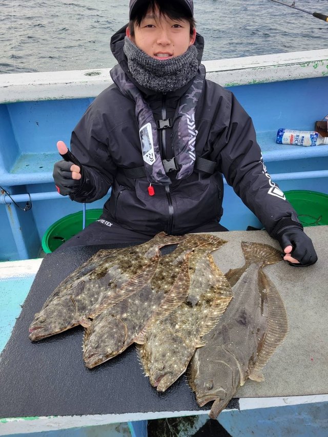 ヒラメで出船潮流れなく大苦戦の1日でした竿頭はレンタルの女性で3枚でした潮流れよくなれば数も釣れると思います。