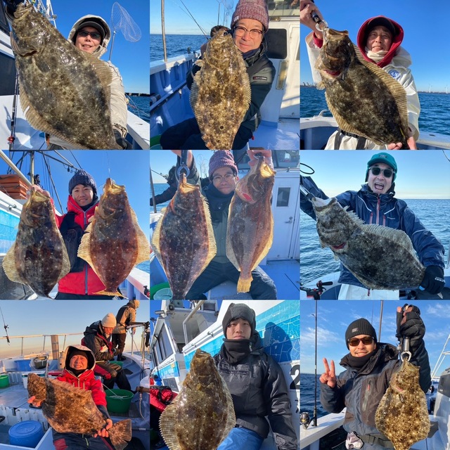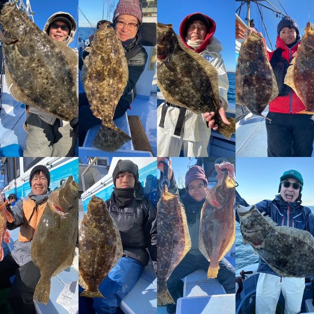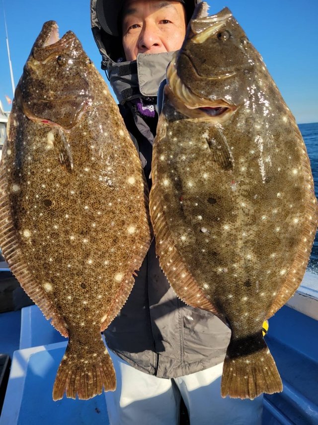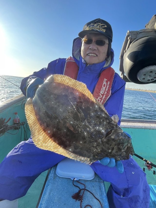 0.50~2.50kg 1~7匹 ヒラメ船。 前半、浅場のポイントで、食い良く好調に釣れました。後半、潮流れず苦戦しました。本日も皆さまヒラメ釣れて、オデコ無しでした。
