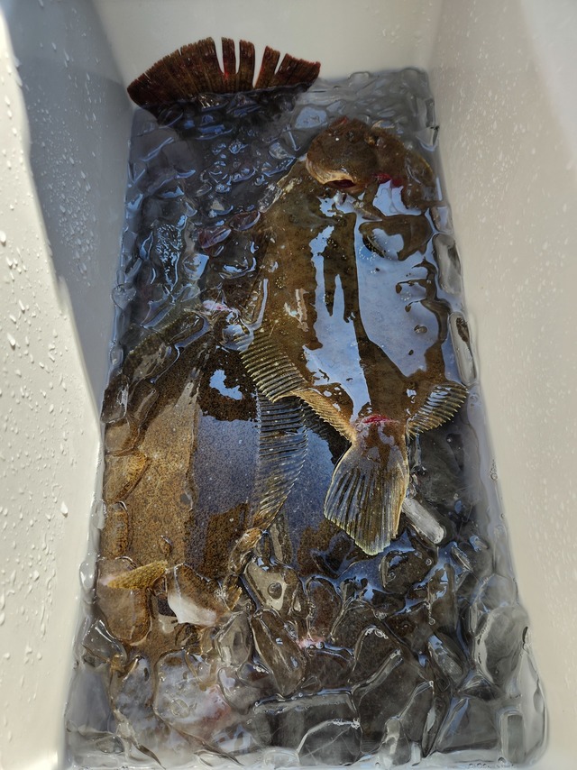 (ガンゾウビラメ)ヒラメ 0.50~1.50kg 1~4匹 メバル ハタ カサゴ 本日は終始ポツリポツリの掛かりでした。明日もヒラメ船に出船します。
