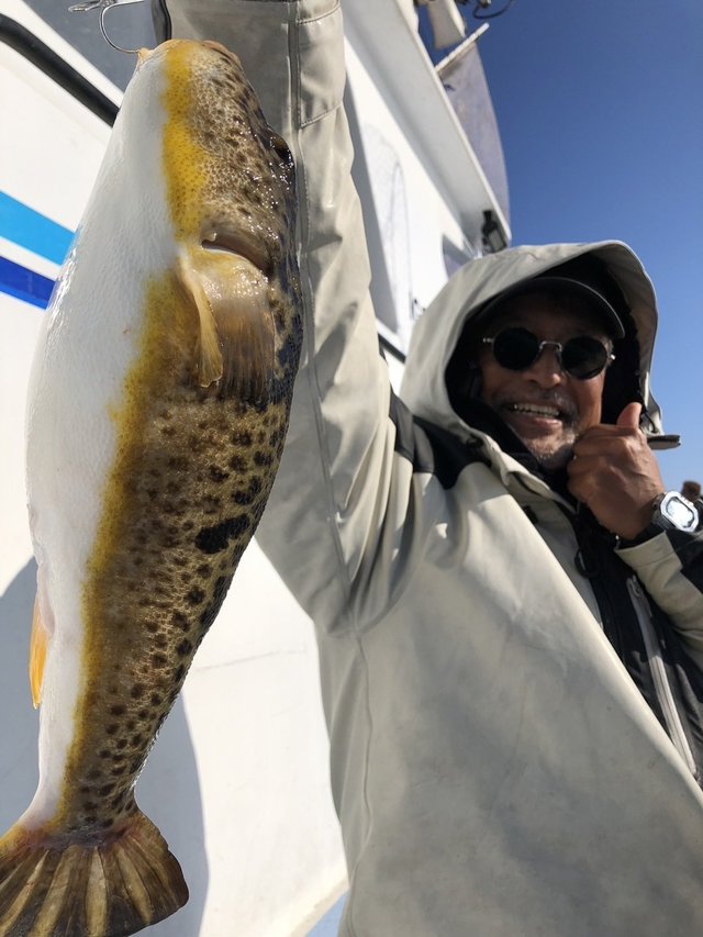 4.00kg 合計1匹 フグ 20~40cm 4~26匹 マダコ 2.00kg 合計1匹 今日も風、うねりがあり近場から探索しましたがどこも型程度でしたがラスト1時間フグらしき反応があり小さい反応ながらもコンスタントに掛かり続けて型も良くお土産十分でした!スソは船酔い