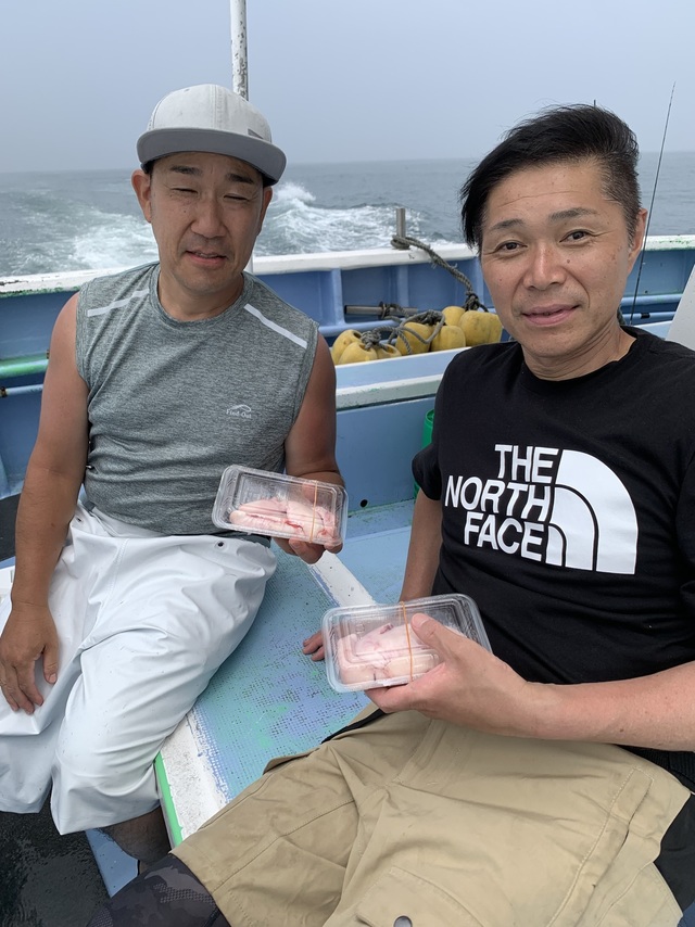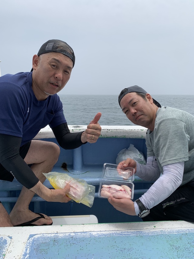 27~40cm 7~9匹 マダイ 1.02~2.54kg 0~1匹 ◆午前テンヤ船 サイズ1.02~2.54kg0~1枚 外道ハナダイ、ホウボウ、ショウサイフグ、トラフグ、カサゴ ◆ショウサイフグ船 サイズ27~40cm7~9匹 その他カワハギ、ガンゾウビラメ、ムシガレイ、カンダイ 竿頭、大森さん、有井さん 午前は潮二枚潮でアタリ取りづらく、喰い悪く大苦戦でした。 フグ船は後半掛りが良くなりましたが時間がなく数が伸びませんでした。 ご乗船の皆さん大変お疲れ様でした。ありがとうございました。またのお越しをお待ちしております。 明日は風が強い為中止とさせて頂きます。大変申し訳ございませんが宜しくお願い致します。