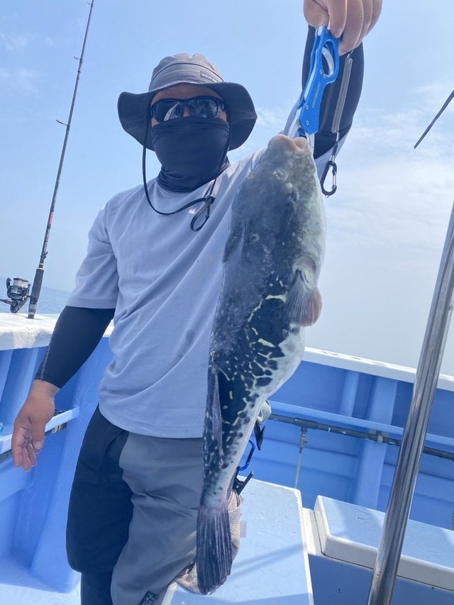 25~40cm 2~7匹 マダイ 1.01~6.24kg 0~4匹 ◆午前テンヤ船 1キロ代7枚、2キロ代5枚、3.01キロ、6.24キロ サイズ1.01~6.24kg0~4枚 竿頭、橋本さん 外道ハナダイ、トラフグ、ショウサイフグ、ホウボウ ◆ショウサイフグ船 サイズ25~40cm2~7枚 午前は朝開始~大鯛、中鯛ヒット、大鯛のフックアウトも2発有りました。その後は当たり全く無くなり終了15分前にポツポツ当たり出し、残り1分に本日最大ヒット、最後まで諦めないで良かったです。海の中は何が起きるかわかりませんね。 フグ船は潮の流れや水色が悪く数が伸びませんでした。 ご乗船の皆さん、暑い中大変お疲れ様でした。ありがとうございました。またのお越しをお待ちしております。