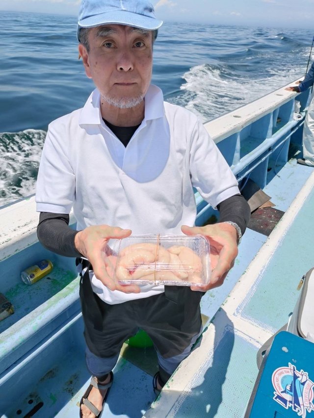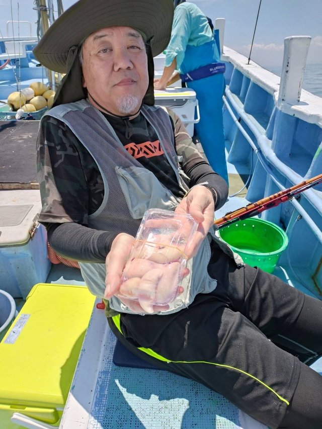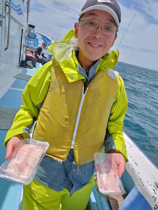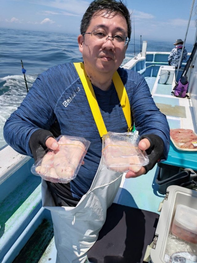 ◆ショウサイフグ船 2隻の高低差 サイズ25~40cm0~9匹 ◆午前テンヤ船 サイズ0.5~2.15kg0~3枚 竿頭宗像さん 外道ハナダイ、ワラサ、ヒラマサ、ショウサイフグ、ホウボウ ショウサイフグ船穏やか過ぎては潮の流れが悪く数が伸びませんでした。 午前マダイ船は潮流れ変わり喰い悪く苦戦、反応は有るので流れ変わればまた喰い出すでしょう。 ご乗船の皆さん、暑い中大変お疲れ様でした。ありがとうございました。またのお越しをお待ちしております。