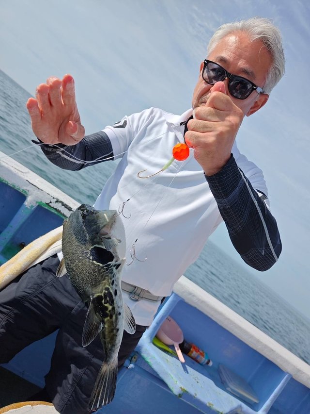 (ショウサイフグ)22~40cm 7~25匹 水深、30m ポツポツと掛かりお土産になりました! 中盤は反応で誘いの合う方は良いペースで数をのばしていましたね! 休み明けも期待できそうです!