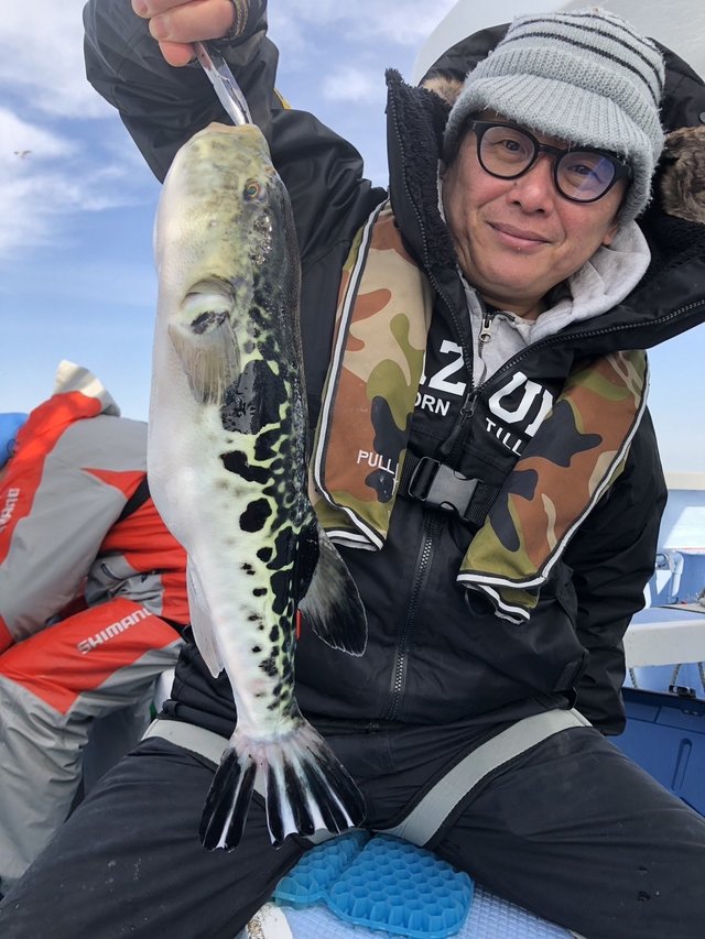 45cm 合計1匹 フグ ショウサイフグ25~45cm…0~13匹。 他ヒラメ、マダコ、マコガレイ、カサゴ、アナゴ、ホウボウ、ガンゾウビラメ、ムシガレイ。 群れが散った様で、前日までの近場ポイントは、朝しばらく粘りましたが数匹釣れただけでした(涙)。 その後は広く探しましたが、フグは型が出る程度でした。 群れがどこかに移動したのだと思います。 明日も探します。