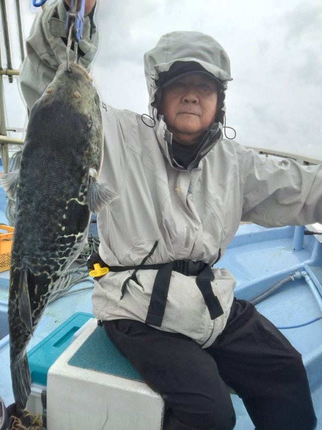 25~45cm 0~8匹 トラフグ 2.00kg 合計1匹 フグ ショウサイフグ25~45cm…0~8匹。 他トラフグ、マダコ、カワハギ、ウマヅラ、ムシガレイ、ガンゾウビラメ。 北東風が強く、海上波もありました。 24~30メートルをジャリ場主体に釣りましたが、海が悪いうえに潮が速く、しかも二枚潮でオマツリが多発してしまう状況でした(・・;)。 それでも朝のうちはフグもポツリポツリと型が出ていたのですが、波がより高くなってくるとアタリも激減してしまいました(涙)。