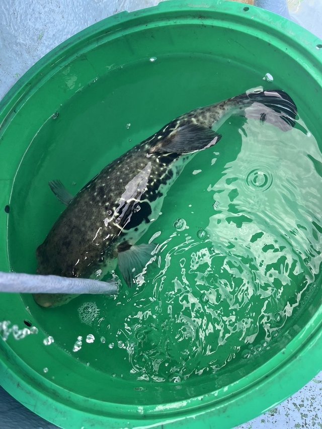 25~45cm 11~18匹 フグ ショウサイフグ25~45cm…11~18匹。 海況が良くなって来たので港前から始めてみましたが、フグは型が出ず。一昨日釣れたジャリ場へ移動してみましたがやはり型を見ただけでした。 途中まではどこを釣っても型を見るのがやっとで大苦戦しましたが、終盤に大きく移動したジャリ場でやっとポツポツ掛かり始めました。 釣れ始めてからは平均的に掛かり、なんとか皆さん土産が取れました(^-^)。