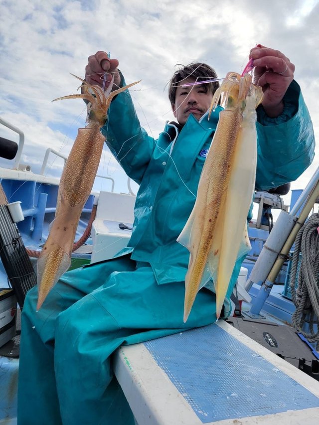 30~55cm 1~14匹 「ヤリイカ船」本日ヤリイカ船、朝からノリはあったんですが…バレが凄い、とにかく凄い。スミや脚だけになってるのも、終盤に活性あがり、2点掛けがポツポツ見られました! 小槍も混ざりましたが、基本的にイカは特大にてお土産になりましたね♪トップの方は乗りの半分も取れなかった…。 イカがデカいので、3ハイも釣れば晩げのおかずになりますよ〜。今日は終盤に活性あがり、後半勝負でした。 ほぼ満席の船内にて全員GET。前半バレが多く、テクニカルな感じだったので、とりあえず良かったです〜。 本日ご乗船の皆様、いつもありがとうございます、またのご釣行、こころよりお待ちしております!