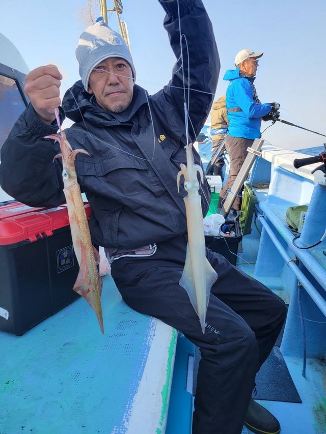 30~50cm 2~8匹 マダイ 1.00~5.52kg 1~8匹 ◆ヤリイカ船パラソル級主体 サイズ35~50cm2~8杯 ◆午前テンヤマダイ船 爆釣り絶好調 1キロ以上のマダイ船中41枚。 平均4枚 1キロ台8枚、2キロ台19枚 3キロ台10枚 4キロ台3枚、5.52キロ1枚 3.02キロ、3.12キロ、3.21キロ、3.24キロ、3.25キロ、3.31キロ、3.41キロ、3.67キロ、3.77キロ、3.96キロ、4.41キロ、4.61キロ、4.66キロ、5.52キロ サイズ1.0~5.52kg1~8枚 竿頭、木更津市福島さん 外道、ハナダイ、ショウサイフグ、ホウボウ、トラフグ ヤリイカ船は南冲を狙い、サバの邪魔が有りましたが何とか数が上がりました。 マダイ午前は、朝掛かり悪く場所移動後中鯛、大鯛ヒットヒットで忙しかったですね。 明日はショウサイフグ船、テンヤ真鯛午前、午後の出船です。宜しくお願い致します。