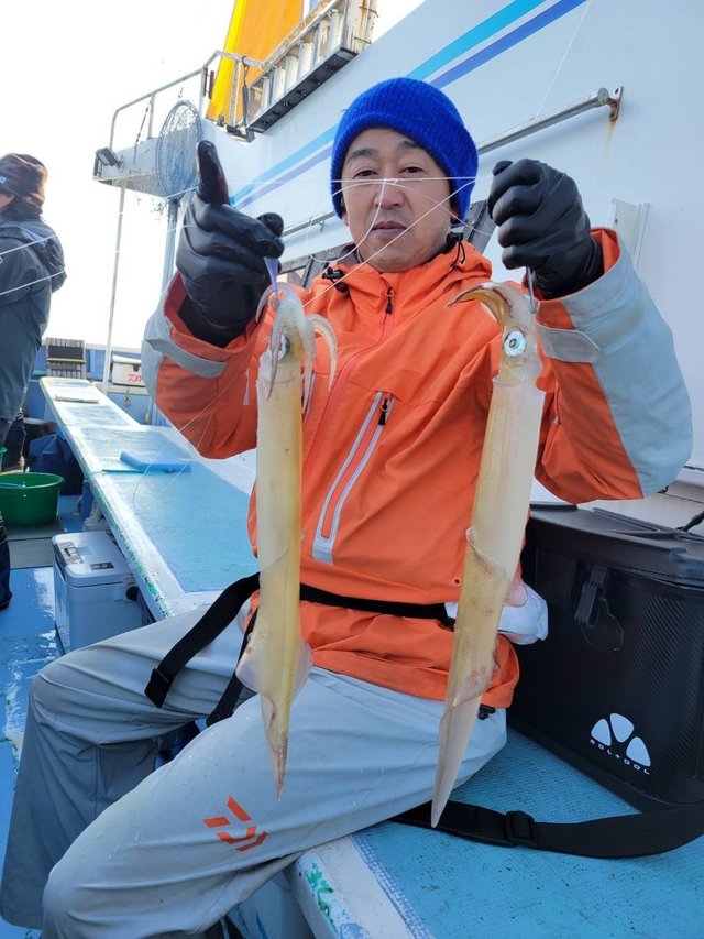 25~52cm 2~8匹 ヤリイカ船です。海上ナギ良かったが、終日潮流れず単発でポツポツ乗っていました。大型ヤリイカ多い。