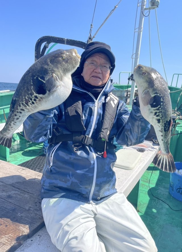 40~55cm 3~21匹 マダイ 0.40~4.79kg 0~9匹 ショウサイフグ 25~40cm 6~9匹 ◆ヤリイカ船パラソル級主体 サイズ40~55cm3~21杯 トップ常総市の山野井さん ◆午前テンヤマダイ船 2.12キロ、2.45キロ、2.84キロ、3.14キロ、3.75キロ、4.79キロ 1キロ台船中14枚 サイズ0.4~4.79kg0~9枚 その他ハナダイ、カサゴ、ホウボウ、トラフグ、ショウサイフグ トップ新座市の平澤さん ◆ショウサイフグ船 ジャンボフグ主体 サイズ25~40cm6~9匹 その他ホウボウ、トラフグ、ハナダイ 今日のヤリイカ船は時化後でウネリが有りバレも多かったですが型が良く何とか数が上がりました。 真鯛午前船は朝から大ヒット、タブルヒットも有り終日ポツポツ当たり上がりました。 フグ船は数は伸びませんでしたが型は良かったです。 ご乗船の皆さん、大変お疲れ様でした。ありがとうございました。またのお越しをお待ちしております。