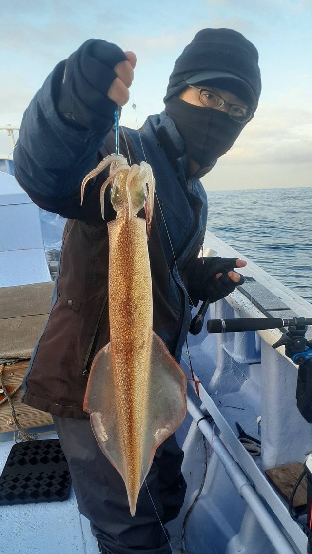 30~52cm 2~9匹 TOP2名、本日ヤリイカ船、朝イチは乗りすこぶる良く、2,3点掛けも見られ、落とせば乗る状態に期待したんですが…。避けてくれる船もいるんですが、常習の底曳船が釣船の船団を割って入ってきてしまい…仕掛けを漁具でさらわれる方も。 やはり魚網通すとイカの活性下がり、大流しで型が出るか出ないかになってしまいました。最後の最後に乗り気あり、5,6回落とせば乗った方もいましたが、今度は底引き船が来てまたパッタリと…いやぁ参った。 本日ご乗船の皆様、いつもありがとうございます、またのご釣行、こころよりお待ちしております。