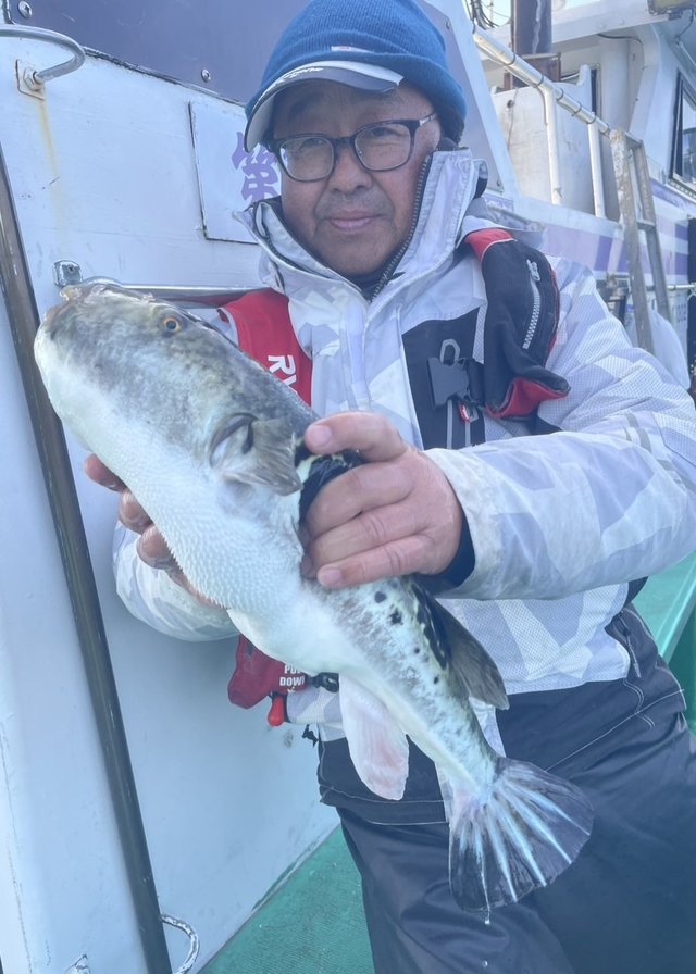 30~50cm 13~30匹 ショウサイフグ 25~42cm 9~23匹 ◆ヤリイカ船 パラソル級主体好調 サイズ30~50cm13~30杯 トップ川崎市の北山さん 27杯春日部市の長谷川さん ◆ショウサイフグ船 ジャンボフグ主体好調 サイズ25~42cm9~23匹 その他トラフグ、ホウボウ トップ新座市の寳田さん 今日のヤリイカ船、フグ船は海上波がおさまり、アタリ多く数が上がりました。 ヤリイカ船はサバの邪魔が有る方と無い方と同じ船中でも違いが有りました。 ご乗船の皆さん、大変お疲れ様でした。ありがとうございました。またのお越しをお待ちしております。 明日はヤリイカ船、テンヤ真鯛船が出船します。 フグ船はご予約が入り次第出船します。宜しくお願い致します。