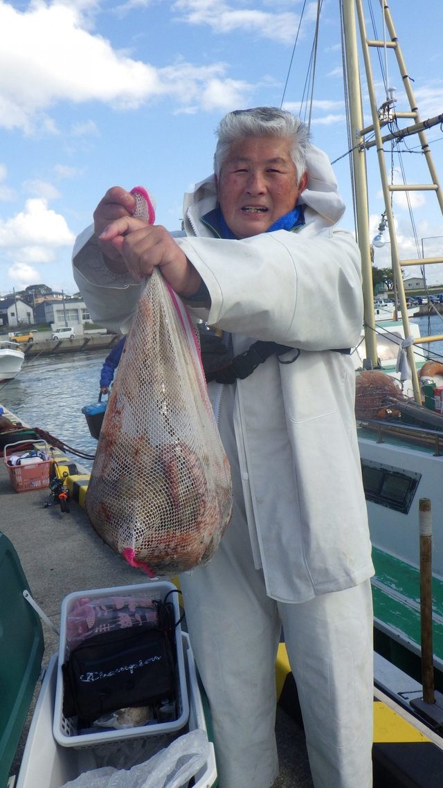 0.30~1.80kg 1~2匹 マダイ 0.30~0.90kg 0~5匹 ◆マダコ船 サイズ0.3~1.8kg1~2杯 ◆午前テンヤ船 サイズ0.3~0.9kg0~5枚 外道ハナダイ、カサゴ、イナダ、ワラサ、ショウサイフグ、トラフグ、マハタ マダコ船はウネリが有りアタリが取り難かったです。マダイ午前船は潮流れ悪く当たり少なく苦戦でした。 ご乗船の皆さん、大変お疲れ様でした。ありがとうございました。またのお越しをお待ちしております。