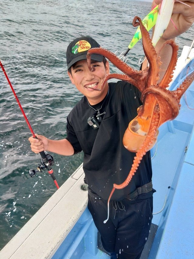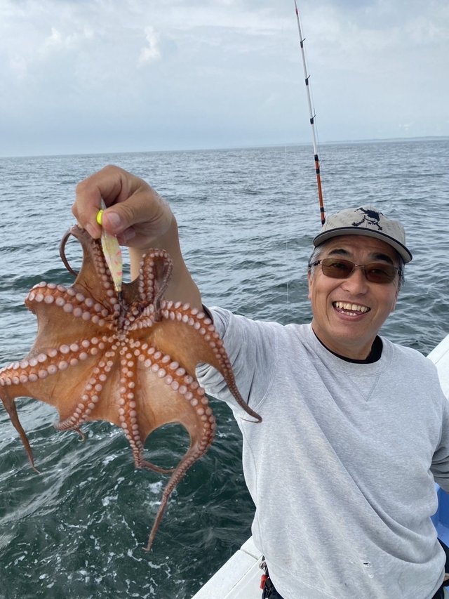 0.20~1.00kg 0~8匹 真蛸船 ◎●○マダコ船○●◎ マダコ0.2~1.0kg 0~8杯 昨日は北東風強く、マダコ船は前日から中止に…。 今日はその風がまだ残っており、スロー航行で一昨日のポイントまで…(汗) 懸念された底荒れの影響も大きかったようで、タコのご機嫌は悪く、風波もあって釣り辛く、慣れない方々には厳しい状況でした。 ポツ~リ、ポツリ程度のノリで数伸びず!でした。 ・オモリは40、60、80号を状況により使い分け。(派手なオモリは不要です) ・エギはタコ(専用)エギ3~4号、2本付け(が良いでしょう)。 ・その他、天秤やオモリの立ち上げ、装飾品の類いは不要です。(ほぼNGです。) ・エギ、オモリ、ネット(蛸入れる)は販売あります。 貸し竿はご予約時に申し付けください。