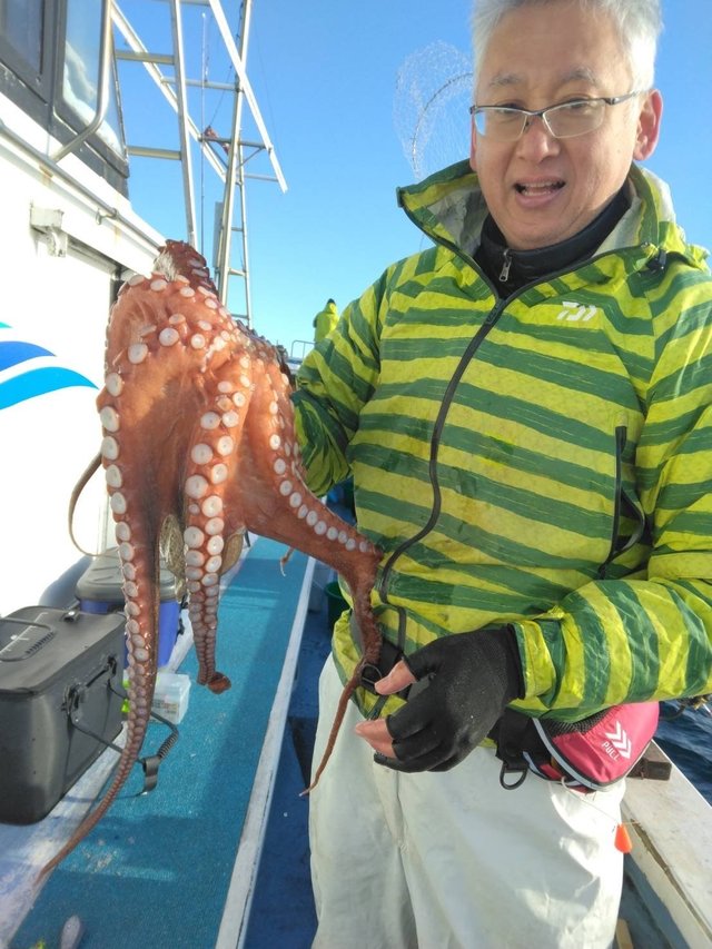 1.00~5.50kg 0~5匹 ヒラメ 0.40~5.30kg 0~8匹 ◆ヒラメ船良型交じり サイズ0.4~5.3kg0~8枚 その他イナダ トップ北区の鎌田さん ◆マダコ船2隻の高低差 良型、大型主体 サイズ1.0~5.5kg0~5杯 トップ龍ケ崎市の東郷さん 今日は海上穏やか過ぎて潮の流れが悪い中、ヒラメ船は良型交じり何とか型が取れました。 マダコ船は平均3キロ前後の良型が多かったです。 ご乗船の皆さん、大変お疲れ様でした。ありがとうございました。またのお越しをお待ちしております。