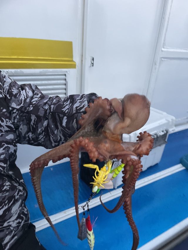 0.70~4.50kg 0~9匹 タコエギで出船前半どうにかポイント見つけ大型ばかりではありませんでしたが4k台頭に3k台・2k台と良い型混じりの釣果でした。竿頭の方はダブル掛けが有りました。 エギタコ船空席有る日まだ有りますのでお早めにご連絡お願い致します。