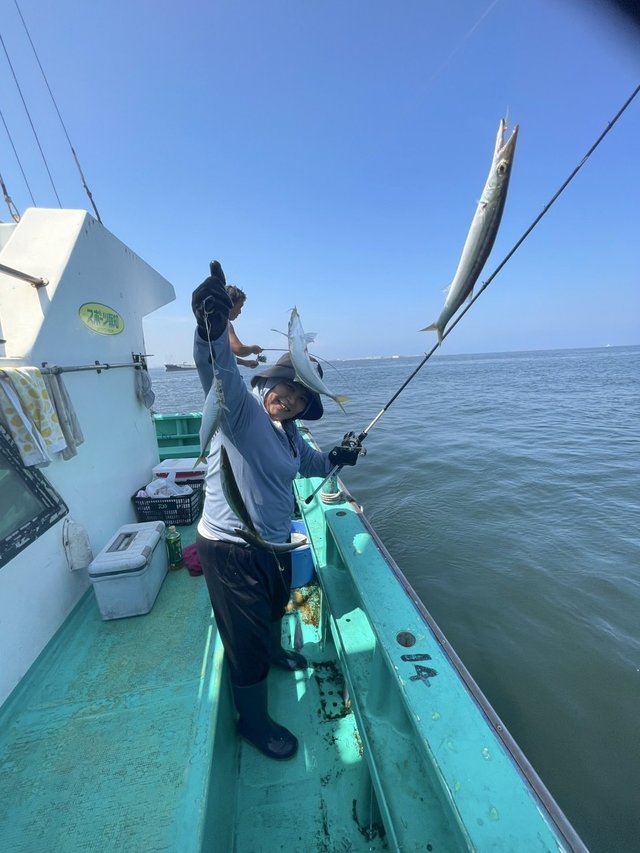 (マアジ)サバ 根魚五目船、アジ・サバ混じり40~50尾。 カンパチ・ワラサ、ハリス切れ多数有り。 座席は予約の際に伺います。 早い順になるのでご期待に添えない場合も御座います。 ご了承下さいね。 詳しくは電話確認でお願い致します。 貸し竿、投入機(数に限りが有ります) レンタルの方は予約の際に必ず申し出てください。 ご用意出来ない場合があります。 ※必ずライフジャケットの着用をお願いします。 無い方は必ず申し出て下さいね。 《日程》 9月1日(月)根魚五目船(空き多数) 2日(火)根魚五目船(空き多数) 3日(水)根魚五目船(空き多数) 4日(木)休み 5日(金)根魚五目船(空き多数) 6日(土)根魚五目船(空き多数) 7日(日)根魚五目船(空き多数) 11日(木)根魚五目船(空き多数)