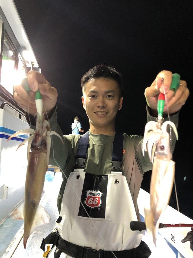20~38cm 10~101匹 ◆◇◆夜イカ船◆◇◆ ・スジイカ…10ー101ハイ ※イカメタルの釣果 ※スソは船酔いの方 ・その他…ムラサキイカ、ムラサキイカ、サバ 本日は時化後でウネリ残ってましたが終日乗り活発で棚は少々深いものの楽しめました! 皆さんイカメタルでしたがイカメタルならではのゲーム性を十分に楽しんでましたね! 今日はスジイカで通しましたが、臨機応変にマルイカもリレーで狙うのでタックルは準備しといて下さいねー! ※メタルスッテ…20ー30号 ※ドロッパー…1.5ー2.5号スッテ ※マルイカタックル…30ー50号